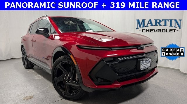 !!! Carfax 1 Owner, Panoramic Sunroof, Adaptive Cruise Control, Evotex Seating, Black Illuminated Front Bow Tie, Google Built-In, Autosense Power Liftgate, 8-Way Power Driver Seat Adjuster W/Lumbar, Heated, Wrapped, Flat Bottom Steering, Multicolor Ambient Lighting, 21 Aluminum Wheels, Enhanced Automatic Emergency Braking, Forward Collision Alert, Front Pedestrian And Bicyclist Braking, Following Distance Indicator, Intellibeam-Auto High Beam, Safety Alert Seat, Rear Cross Traffic Braking Rear Pedestrian Alert, Blind Zone Steering Assist, Enhanced Lane Keep Assist With Lane Departure Warning, Reverse Automatic Braking, Rear Park Assist, Intersection Automatic Emergency Braking, Side Bicyclist Alert, HD Surround Vision, Traffic Sign Recognition and MORE!!! This 2025 Chevrolet Equinox EV RS FWD is offered exclusively by Martin Chevrolet with a CARFAX Buyback Guarantee, you can be confident with your purchase at Martin Chevrolet. If any issues reported to the DMV are not shown on the CARFAX report, they'll buy this vehicle back at the full purchase price.*FACTORY INSTALLED OPTIONS:PANORAMIC SUNROOF ($1,500)RADIANT RED TINT COAT ($495)BLACK ILLUMINATED FRONT BOWTIE EMBLEM ($450)*Martin Chevrolet is excited to be Crystal Lake and McHenry County's newest Chevy dealer. We handle every transaction in a very simple, straightforward, and transparent manner and our goal is to make your car buying experience fun. Please call, e-mail, or stop in and see why Martin Chevrolet will be Chicagoland's #1 Chevy dealer!